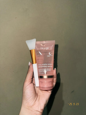Apply the collagen wrap mask before bed. The mask deeply hydrates and locks in moisture so you wake with plumper, softer skin ready for the day. Perfect after travel or late nights to restore hydration and reduce morning tightness.
